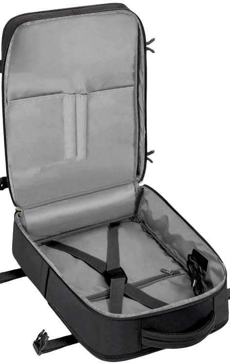O design expansível oferece espaço suficiente para roupas, eletrônicos e outros itens essenciais.
