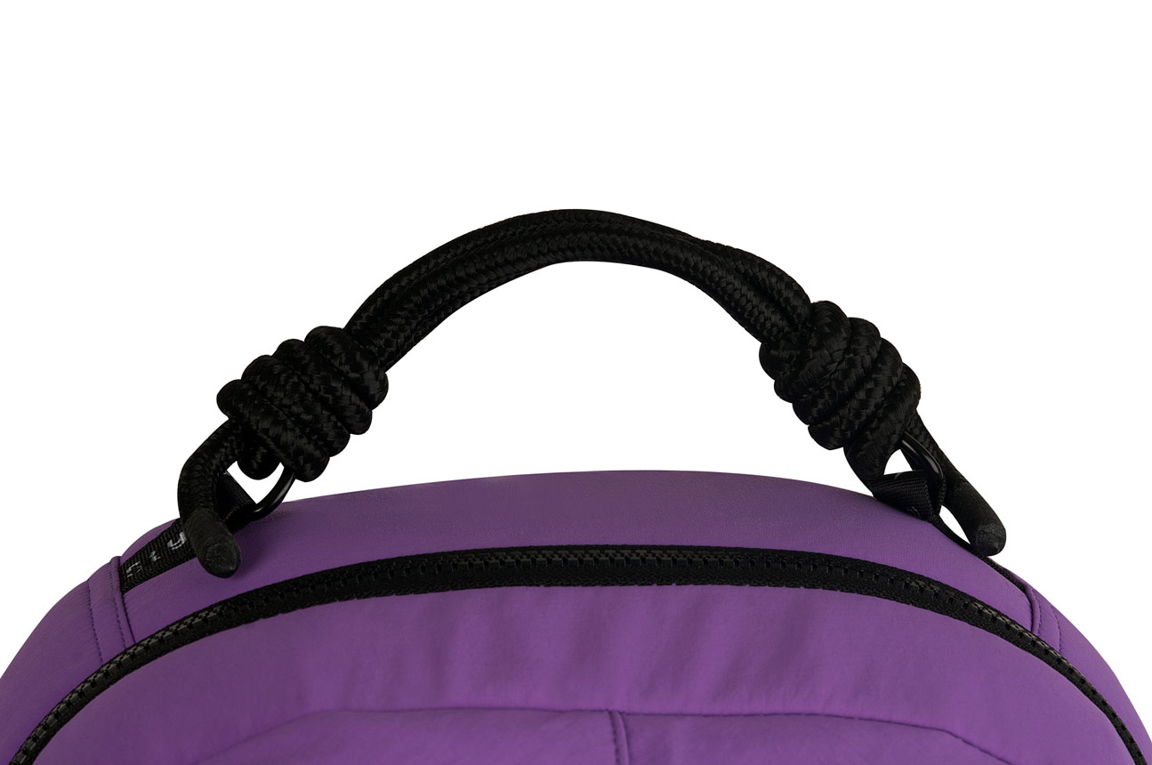 Confeccionadas em poliéster com matelassê de estrela, placa de metal com resina e metais pretos/ônix, strap acetinado personalizado. Mochilas com alça de mão em corda, chaveiro personalizado com porta fone de ouvido e mosquetão de estrela, chaveiro fixo com detalhes em PVC e placa em acrílico com Qr Code.
